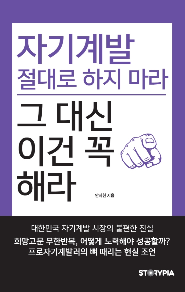 이러한 현실 속에서, 자기계발을 무한반복한다고 인생이 달라질 수 있을까? 에 대한 의문을 던지는 도서가 출간됐다. 스토리피아에서 내 놓은 현 해양경찰 안지현 저자의 도서 ‘자기계발 절대로 하지마라, 그 대신 이건 꼭 해라’다.